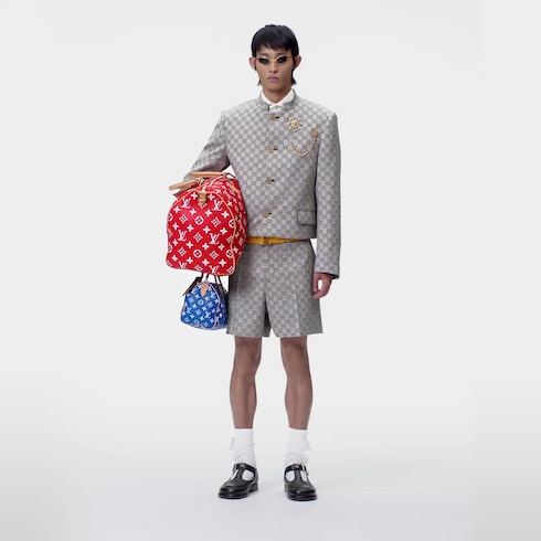 La borsa Speedy P9 Bandoulière 50 Monogram Leather è realizzata in morbida pelle di vitello. Il modello è reinterpretato dal direttore creativo Pharrell Williams in una versione dai vivaci colori primari. L'accessorio è impreziosito da una stampa serigrafica dell'emblematico motivo della Maison, che riproduce l'effetto twill sfocato dell'iconico decoro sulla tela, che sembra quasi dipinto a mano.