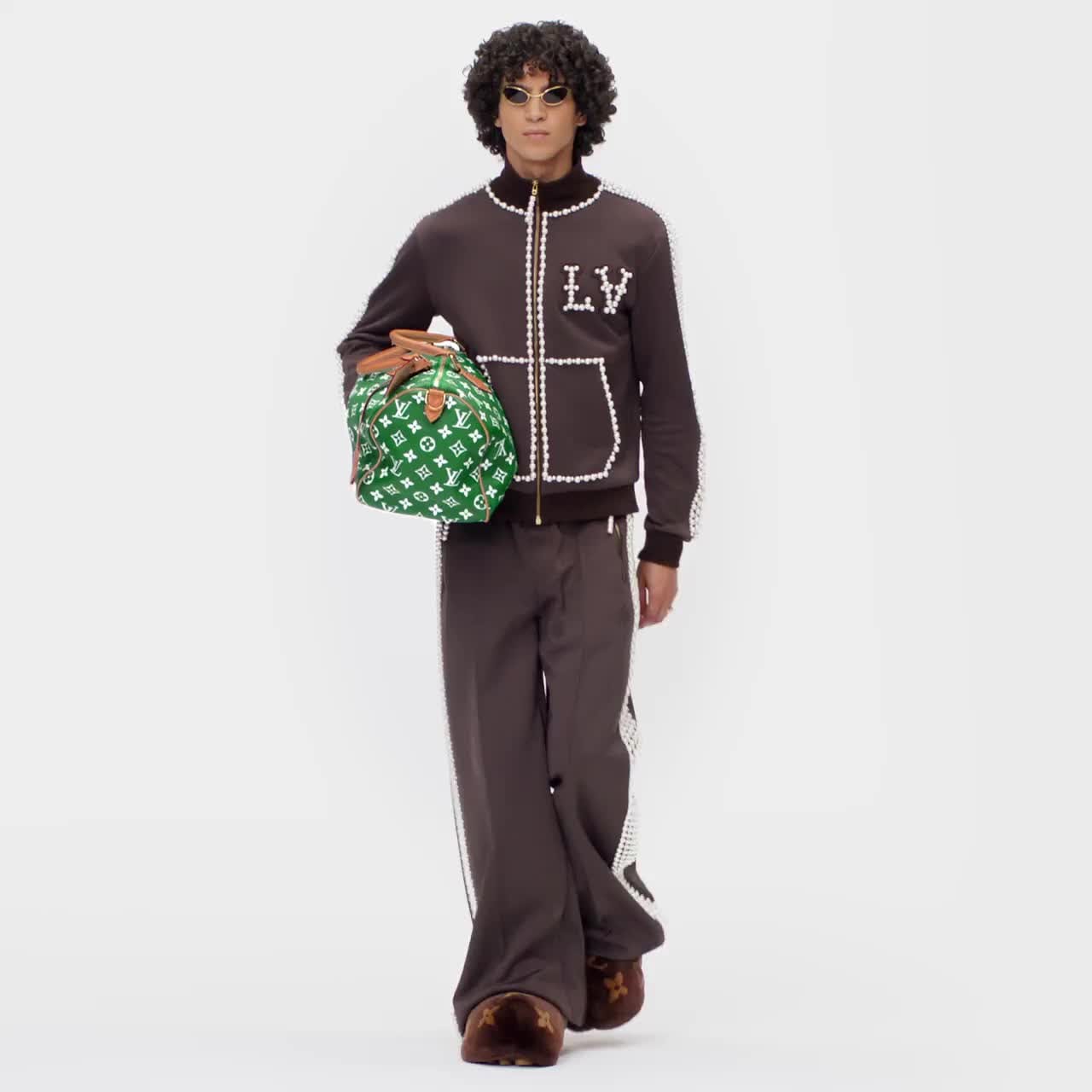 La borsa Speedy P9 Bandoulière 50 Monogram Leather è realizzata in morbida pelle di vitello. Il modello è reinterpretato dal direttore creativo Pharrell Williams in una versione dai vivaci colori primari. L'accessorio è impreziosito da una stampa serigrafica dell'emblematico motivo della Maison, che riproduce l'effetto twill sfocato dell'iconico decoro sulla tela, che sembra quasi dipinto a mano.
