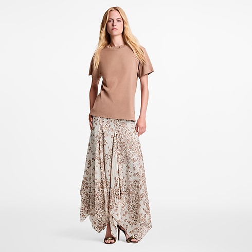 L'iconica T-shirt viene reinterpretata con audacia grazie a borchie e occhielli metallici a forma di fiore Monogram che impreziosiscono il girocollo, regalando un tocco distintivo di raffinata eleganza. Realizzata in morbido jersey di cotone, in una nuance di stagione estremamente versatile, la creazione presenta un taglio leggermente sagomato che assicura uno stile casual e confortevole per ogni giorno, senza rinunciare allo stile.