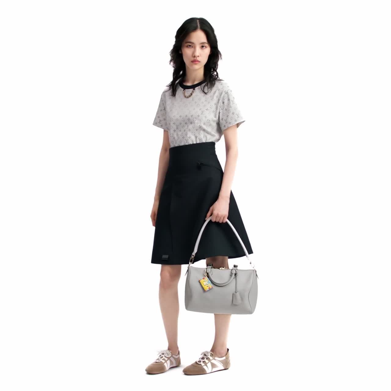 La T-shirt è reinterpretata in una versione dalla vestibilità classica in morbido jersey di cotone. Il modello casual, rifinito dall'elegante collo a coste, è decorato dal motivo Monogram effetto lavato in stile vintage all-over, distintivo della stagione. La catenella dorata con iniziali LV completa la creazione con un ulteriore tocco iconico.
