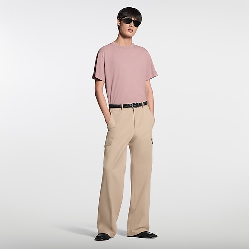 Questa T-shirt in cotone biologico della sfilata Primavera-Estate 2026 è proposta nell'iconica tonalità rosa polvere della stagione. La finitura effetto lavato, dal sapore vintage, si ispira all'antica tradizione indiana della tintura naturale, che caratterizza l'intera collezione. Un raffinato logo ricamato impreziosisce il petto, mentre un'applicazione in pelle con firma Marque L. Vuitton déposée rifinisce il retro.