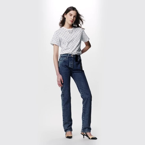 La T-shirt stampata, parte della Capsule Collection LV Escale Summer, è realizzata in morbido jersey di cotone. Il capo è decorato dall'emblematico motivo Monogram, impresso all'interno per ottenere un leggero effetto dégradé. L'esclusivo modello, rifinito dalle maniche ad aletta e dal dettaglio con catenella al collo che donano un tocco di raffinatezza, è un must-have iconico per l'estate.