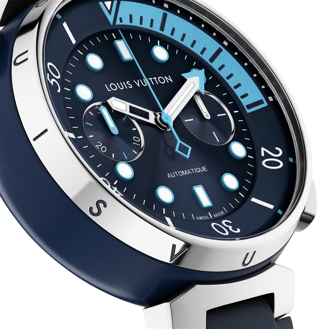 L'orologio Tambour Street Diver Chronograph arricchisce l'omonima collezione con una complicazione essenziale. La funzione cronografo sottolinea l'attenzione nei confronti della praticità della Maison, rivisitando i codici estetici del pluripremiato design GPHG 2021. L'esclusiva versione Skyline Blue, che si distingue per la cassa dalle proporzioni perfette, le finiture a contrasto e gli indici luminescenti, aggiunge un'allure sporty-chic a qualsiasi outfit.