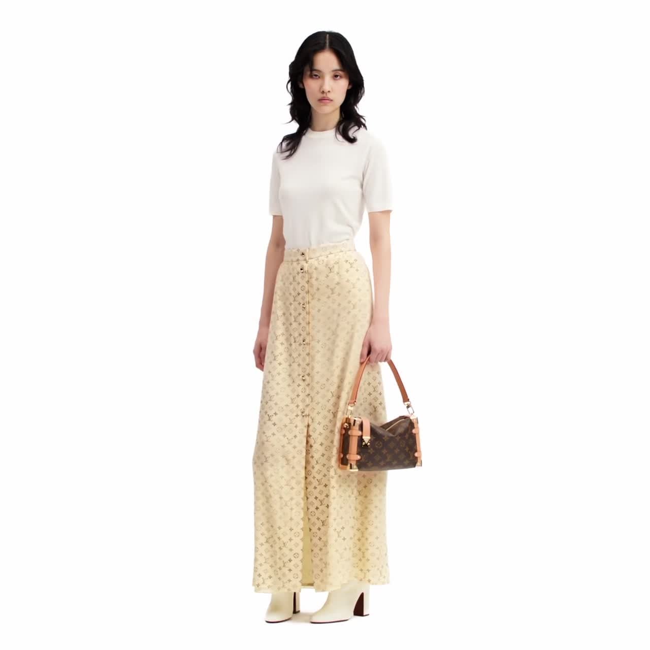 Il top, proposto in fine maglia di lana con un tocco di seta, è perfetto per impreziosire gli outfit di tutti i giorni. L'esclusivo modello presenta un design tradizionale con orlo e girocollo a coste. La creazione è completata sul retro dall'iconico dettaglio con firma Louis Vuitton oversize, che dona al capo un'allure contemporanea.