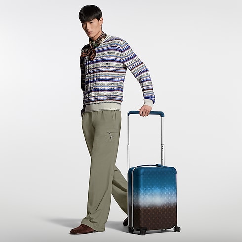 Questo trolley Horizon 55 con ruote è realizzato in tela Monogram Pigment, una reinterpretazione audace del motivo Monogram ispirata ai tessuti indiani. La sfumatura che passa da colori vivaci al classico motivo Monogram Ébène mette in risalto la maestria artigianale della Maison. Realizzato in formato cabina ma straordinariamente capiente, il suo design con maniglia esterna ottimizza il volume interno per un viaggio super comodo.