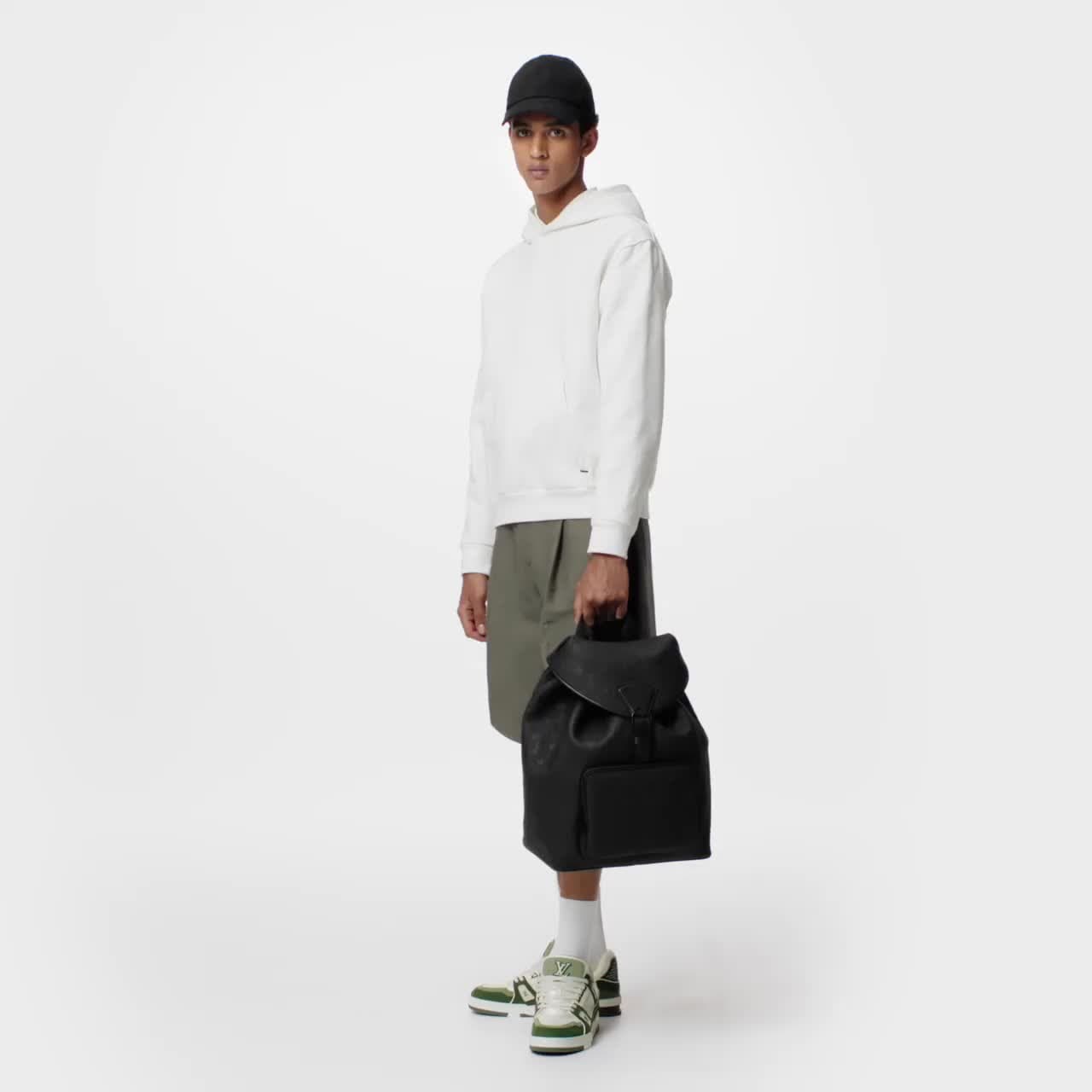 Lo zaino Montsouris è realizzato in pelle Taurillon, impreziosita dall'iconico motivo Monogram impresso. Il modello, proposto in un'elegante versione color nero, è rifinito dalle parti metalliche tono su tono. Lo scomparto imbottito, le due tasche piatte interne e quella esterna con zip completano il funzionale accessorio.